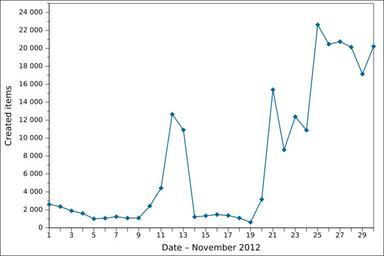 | Keywords: 2012-11 Wikidata item creation EN.svg de Grafische Darstellung des täglichen Anzahls der in November 2012 angelegten Gegenstände auf Wikidata auf Englisch Löschungen werden nicht berücksichtigt en Graph presenting the number of items created daily on Wikidata in November 2012 in English Item deletions are not taken into account fr Graphique en anglais représentant le nombre d'éléments créés par jour sur Wikidata en novembre 2012 Les suppressions d'éléments ne sont pas prises en compte 2012-12-05 12 45 48 own Ljubinka cc-zero de inline yes File 2012-11 Wikidata item creation DE svg fr inline yes File 2012-11 Wikidata item creation FR svg Wikidata statistics in November 2012 Wikidata statistics in English |
