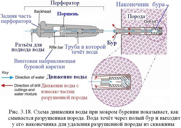 | Keywords: Обеспыливание 2012 Рис. 3.18. Схема движения воды при мокром бурении.jpg ru Иллюст ация к учебнику по обеспыливанию п и добыче и пе е аботке полезных мине альных ископаемых глава 3 а Рис 3 18 показано использование воды для удаления аз ушенной по оды Вода течёт че ез полый бу и выходит у его наконечника для удаления аз ушенной по оды из скважины en Figure 3 18 Water flow during a drilling operation to demonstrate water flushing of the drill cuttings The water flows through the drill into the center of the drill steel and out the end of the drill bit to remove the cuttings from the drill hole 2015-02-02 http //www cdc gov/niosh/mining/works/coversheet1765 html Dust Control Handbook for Industrial Minerals Mining and Processing CDC 2012 Andrew B Cecala Andrew D O Brien Joseph Schall et al other versions Рис 3 18 Схема движения воды п и мок ом бу ении показывает как смывается аз ушенная по ода Вода течёт че ез полый бу и выходит у его наконечника для удаления аз ушенной по оды из скважины PD-USGov Workplace safety Uploaded with UploadWizard |