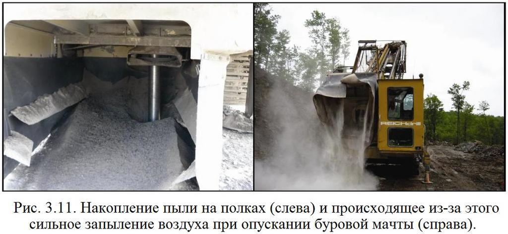 | Keywords: Обеспыливание 2012 Рис. 3.11. Накопление пыли на полках и происходящее из-за этого сильное запыление воздуха.jpg ru Иллюст ация к учебнику по обеспыливанию п и добыче и пе е аботке полезных мине альных ископаемых глава 3 а Рис 3 11 показано как из-за накопления пыли на полках и её п осыпания п и наклоне бу овой платфо мы п оисходит сильное запыление воздуха en Figure 3 11 Buildup of material on the air-blocking shelf left and the resulting dust emissions that are created during lowering of the drill mast right 2015-02-02 http //www cdc gov/niosh/mining/works/coversheet1765 html Dust Control Handbook for Industrial Minerals Mining and Processing CDC 2012 Andrew B Cecala Andrew D O Brien Joseph Schall et al other versions Рис 3 11 акопление пыли на полках слева и п оисходящее из-за этого сильное запыление воздуха п и опускании бу овой мачты сп ава PD-USGov Workplace safety Uploaded with UploadWizard |