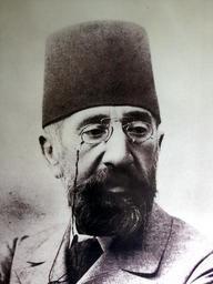| Keywords: 20131205 Istanbul 097.jpg Osman Hamdi Bey before 1911 original photograph<br/> 2013 12 05 photograph by Mark Ashman own Mark Ahsmann PD-old 2013 in Istanbul Beards in Turkey Black and white photographic portraits Istanbul Archaeological Museums Males with glasses Males with hats Photographs of Osman Hamdi Bey Uploaded with UploadWizard |