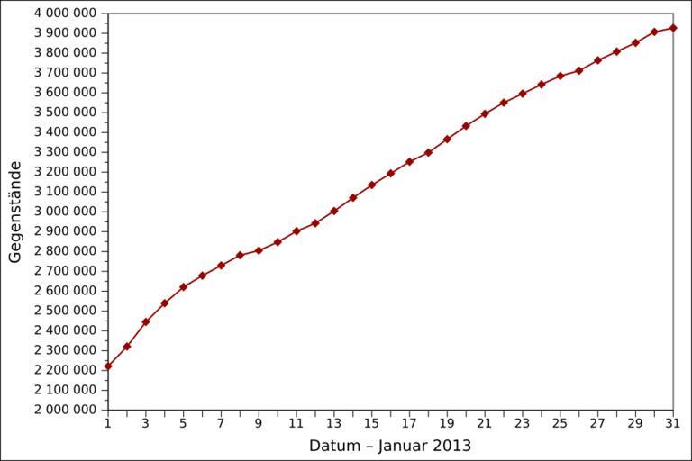 | Keywords: 2013-01 Wikidata items DE.svg de Grafische Darstellung des vollständigen Anzahls der angelegten Gegenstände auf Wikidata in Januar 2013 auf Deutsch Löschungen werden nicht berücksichtigt en Graph presenting the total number of items created on Wikidata as of January 2013 in German Item deletions are not taken into account fr Graphique en allemand représentant le nombre total d'éléments créés sur Wikidata en janvier 2013 Les suppressions d'éléments ne sont pas prises en compte 2013-02-01 16 44 00 own Ljubinka cc-zero en inline yes File 2013-01 Wikidata items EN svg fr inline yes File 2013-01 Wikidata items FR svg Wikidata statistics in January 2013 Wikidata statistics in German |