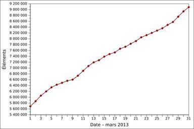 | Keywords: 2013-03 Wikidata items FR.svg de Grafische Darstellung des vollständigen Anzahls der angelegten Gegenstände auf Wikidata in März 2013 auf Französisch Löschungen werden nicht berücksichtigt en Graph presenting the total number of items created on Wikidata as of March 2013 in French Item deletions are not taken into account fr Graphique en français représentant le nombre total d'éléments créés sur Wikidata en mars 2013 Les suppressions d'éléments ne sont pas prises en compte 2013-04-01 21 27 own Ljubinka cc-zero File 2013-03 Wikidata items DE svg File 2013-03 Wikidata items EN svg Wikidata statistics in March 2013 Wikidata statistics in French |