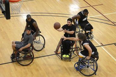 | Keywords: 2013 Warrior Games 130503-D-FW736-027.jpg en Members of the Army 2013 Warrior Games wheelchair basketball team perform drills in Colorado Springs Colo May 3 2013 The team was training for the Warrior Games an annual event allowing wounded ill and injured service members and veterans to compete in Paralympic sports including archery cycling shooting sitting volleyball track and field swimming and wheelchair basketball DoD photo by Marvin Lynchard/Released 2013-05-03 Marv Lynchard https //www dvidshub net/image/943125 130503-D-FW736-027 2013-05-30 06 39 COLORADO SPRINGS CO US PD-USGov 2013 Warrior Games Images from DoD uploaded by Fæ |