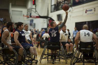 | Keywords: 2013 Warrior Games 130513-N-BA418-065.jpg en Retired Navy Aviation Electrician's Mate Steven Davis from Turlock Calif shoots the ball during a wheelchair basketball game at the 2013 Warrior Games More than 200 wounded ill and injured service members and veterans as well as an international team representing the United Kingdom will compete at the U S Olympic Training Center and U S Air Force Academy The military service with the most medals will win the Chairman's Cup U S Navy photo by Mass Communication Specialist 2nd Class Andrew Johnson/Released 2013-05-13 Petty Officer 3rd Class Andrew Johnson https //www dvidshub net/image/933769 130513-N-BA418-065 2013-05-16 23 17 COLORADO SPRINGS CO US PD-USGov-Military-Navy U S Olympic Training Center Images from DoD uploaded by Fæ |