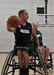 | Keywords: 2013 Warrior Games Wheelchair Basketball 130414-N-DT940-512.jpg en Team Navy/Coast Guard member retired Aviation Electrician's Mate Steven Davis of Turlock Calif takes command of the ball in a wheelchair basketball game against Team Air Force during the 2013 Warrior Games May 14 The Warrior Games includes competitions in archery cycling seated volleyball shooting swimming track and field and wheelchair basketball The goal of the Warrior Games is not necessarily to identify the most skilled athletes but rather to demonstrate the incredible potential of wounded warriors through competitive sports More than 200 wounded ill or injured service members from the U S and U K armed forces are scheduled to compete in the Paralympics-style competition May 11-16 U S Navy photo by Mass Communication Specialist 1st Class Erica R Gardner/Released 2013-05-14 Petty Officer 1st Class Erica R Gardner https //www dvidshub net/image/932385 130414-N-DT940-512 2013-05-15 13 53 COLORADO SPRINGS CO US PD-USGov-Military-Navy 2013 Warrior Games Images from DoD uploaded by Fæ |