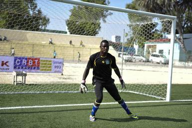 | Keywords: outdoor sport Goalkeeper MartinElungat, a Ugandan playing for Somali Football Club Elman in practice before the game against Horseed Football Club at Banadir Stadium. This was during the opening match of the Somali premier league's new season in Abdiaziz district of the capital Mogadishu on December 19, 2014. Sports in Somalia is recovering attracting foreign players as a result of the relative peace and progress witnessed in the country. AMISOM Photo / Ilyas Ahmed Goalkeeper MartinElungat, a Ugandan playing for Somali Football Club Elman in practice before the game against Horseed Football Club at Banadir Stadium. This was during the opening match of the Somali premier league's new season in Abdiaziz district of the capital Mogadishu on December 19, 2014. Sports in Somalia is recovering attracting foreign players as a result of the relative peace and progress witnessed in the country. AMISOM Photo / Ilyas Ahmed 2014 12 19 Somali Football-17 (16145413375).jpg en Goalkeeper MartinElungat a Ugandan playing for Somali Football Club Elman in practice before the game against Horseed Football Club at Banadir Stadium This was during the opening match of the Somali premier league's new season in Abdiaziz district of the capital Mogadishu on December 19 2014 Sports in Somalia is recovering attracting foreign players as a result of the relative peace and progress witnessed in the country AMISOM Photo / Ilyas Ahmed 2014-12-19 14 58 40 https //www flickr com/photos/au_unistphotostream/16145413375/ Flickr en AMISOM Public Information AMISOM Public Information https //flickr com/photos/61765479 N08/16145413375 2015-11-28 08 58 09 cc-zero cc-0 Photographs by the African Union Mission to Somalia Sports in Somalia Goalkeeper MartinElungat, a Ugandan playing for Somali Football Club Elman in practice before the game against Horseed Football Club at Banadir Stadium. This was during the opening match of the Somali premier league's new season in Abdiaziz district of the capital Mogadishu on December 19, 2014. Sports in Somalia is recovering attracting foreign players as a result of the relative peace and progress witnessed in the country. AMISOM Photo / Ilyas Ahmed |