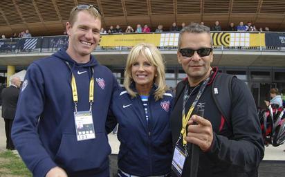 | Keywords: 2014 Invictus Games 140913-N-yy886-004.jpg en Dr Jill Biden joins U S Army Capt Ivan Castro right and his guide Richard Kirby left on the sidelines of a cycling race during the inaugural Invictus Games an international sporting event for wounded warriors to inspire recovery support rehabilitation and generate a wider understanding and respect for those who serve their countries Dr Biden led the White House delegation to the United Kingdom of Great Britain and Northern Ireland to attend the Closing Ceremony of the 2014 Invictus Games The United States is one of 14 nations participating Castro is part of the US team which includes 98 military athletes 22 from the Army 20 from the Marine Corps 22 from the Navy 22 from the Air Force and 12 from U S Special Operations Command USSOCOM Inspired by the U S Warrior Games Prince Harry and the Royal Foundation Invictus Games hosted this international sports competition involving cycling swimming track field archery wheelchair rugby sitting volleyball wheelchair basketball and indoor rowing and powerlifting 2014-09-12 Lt Cmdr Li Cohen https //www dvidshub net/image/1555590 140913-N-yy886-004 2014-09-18 11 28 GB PD-USGov-Military-Navy Prince Harry of Wales Wounded Warrior 2014 Images from DoD uploaded by Fæ |