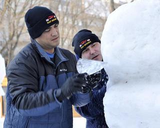 | Keywords: 2014 Navy Misawa Snow Team continues sculpting for the 65th Annual Sapporo Snow Festival 140131-N-ZI955-033.jpg en Chief Builder Billy Harger originally from Pearl City Hawaii and Aircrew Survival Equipmentman 2nd Class Chris Dorrough a native of Gadsden Ala help shape a portion of a snow sculpture Jan 31 2014 The sailors are members of the 2014 Navy Misawa SnowTeam and are in Sapporo Japan are building a snow sculpture for the city's annual snow festival This is the 31st year that Naval Air Facility Misawa and its tenant commands have sent a delegation of sailors to the festival to create a sculpture and to serve as U S Navy goodwill ambassadors U S Navy photo by Senior Chief Mass Communication Specialist Daniel Sanford/Released 2014-01-31 Senior Chief Petty Officer Daniel Sanford https //www dvidshub net/image/1159150 140131-N-ZI955-033 2014-01-31 06 41 SAPPORO AOMORI JP PD-USGov-Military-Navy Naval Air Facility Misawa Images from DoD uploaded by Fæ |