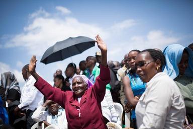| Keywords: kenya nyeri africa roman catholic italy nun sister irene stefani nyaatha mathari gikoni sainthood missionary world war one beatification ceremony soldiers wounded tourism christian nuns faith religion people outdoor KENYA, Nyeri: In a photograph taken 23 May 2015, and made available by Make It Kenya, a woman reacts during a ceremony to mark he beatification of Sister Irene Stefani, an Italian nun and missionary who is beloved in Nyeri and its environs for her selfless service to wounded World War One soldiers and ailing locals alike. Thousands of Catholic faithful, clery, government officials, residents and visitors gathered in the Kenyan town of Nyeri today, 23 May, to witness Africa’s first beatification ceremony for Sister Stefani, who was known as Aurelia Jacoba Mercede until she joined the Consolata Missionary Sisters and changed her name in 1911. She arrived in Nyeri in 1915 and gained fame over the years for her genorosity and extraordinary empathy for the sick, wounded and aged. She died in 1930 at the age of 39, after contracting plague from infected patients that she insisted on treating. Catholic authorities say that reports of her kindness and a miracle attributed to her intercession, moved Pope Francis to approve preparations for her beatification in 2014. MANDATORY CREDIT: MAKE IT KENYA PHOTO / STUART PRICE. KENYA, Nyeri: In a photograph taken 23 May 2015, and made available by Make It Kenya, a woman reacts during a ceremony to mark he beatification of Sister Irene Stefani, an Italian nun and missionary who is beloved in Nyeri and its environs for her selfless service to wounded World War One soldiers and ailing locals alike. Thousands of Catholic faithful, clery, government officials, residents and visitors gathered in the Kenyan town of Nyeri today, 23 May, to witness Africa’s first beatification ceremony for Sister Stefani, who was known as Aurelia Jacoba Mercede until she joined the Consolata Missionary Sisters and changed her name in 1911. She arrived in Nyeri in 1915 and gained fame over the years for her genorosity and extraordinary empathy for the sick, wounded and aged. She died in 1930 at the age of 39, after contracting plague from infected patients that she insisted on treating. Catholic authorities say that reports of her kindness and a miracle attributed to her intercession, moved Pope Francis to approve preparations for her beatification in 2014. MANDATORY CREDIT: MAKE IT KENYA PHOTO / STUART PRICE. |