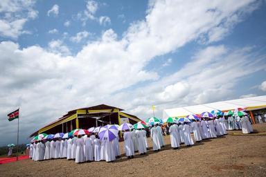 | Keywords: kenya nyeri africa roman catholic italy nun sister irene stefani nyaatha mathari gikoni sainthood missionary world war one beatification ceremony soldiers wounded tourism christian nuns faith religion outdoor sky KENYA, Nyeri: In a photograph taken 23 May 2015, and made available by Make It Kenya, priests gather in fornt of a dias during ceremony to mark the beatification of Sister Irene Stefani, an Italian nun and missionary who is beloved in Nyeri and its environs for her selfless service to wounded World War One soldiers and ailing locals alike. Thousands of Catholic faithful, clery, government officials, residents and visitors gathered in the Kenyan town of Nyeri today, 23 May, to witness Africa’s first beatification ceremony for Sister Stefani, who was known as Aurelia Jacoba Mercede until she joined the Consolata Missionary Sisters and changed her name in 1911. She arrived in Nyeri in 1915 and gained fame over the years for her genorosity and extraordinary empathy for the sick, wounded and aged. She died in 1930 at the age of 39, after contracting plague from infected patients that she insisted on treating. Catholic authorities say that reports of her kindness and a miracle attributed to her intercession, moved Pope Francis to approve preparations for her beatification in 2014. MANDATORY CREDIT: MAKE IT KENYA PHOTO / STUART PRICE. KENYA, Nyeri: In a photograph taken 23 May 2015, and made available by Make It Kenya, priests gather in fornt of a dias during ceremony to mark the beatification of Sister Irene Stefani, an Italian nun and missionary who is beloved in Nyeri and its environs for her selfless service to wounded World War One soldiers and ailing locals alike. Thousands of Catholic faithful, clery, government officials, residents and visitors gathered in the Kenyan town of Nyeri today, 23 May, to witness Africa’s first beatification ceremony for Sister Stefani, who was known as Aurelia Jacoba Mercede until she joined the Consolata Missionary Sisters and changed her name in 1911. She arrived in Nyeri in 1915 and gained fame over the years for her genorosity and extraordinary empathy for the sick, wounded and aged. She died in 1930 at the age of 39, after contracting plague from infected patients that she insisted on treating. Catholic authorities say that reports of her kindness and a miracle attributed to her intercession, moved Pope Francis to approve preparations for her beatification in 2014. MANDATORY CREDIT: MAKE IT KENYA PHOTO / STUART PRICE. |