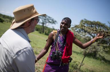 MAKE A MEME View Large Image Maasai Mara: In a photograph taken by Make It Kenya 15 June 2015, Phil Edwards, a repeat, yearly vistor to Porini Mara Camp in the Ol Kinyei Conservancy in Kenya's Maasai Mara, talks and listens with Maasai guides during a walking safari. ...