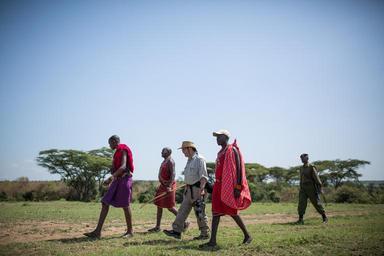 MAKE A MEME View Large Image Maasai Mara: In a photograph taken by Make It Kenya 15 June 2015, Phil Edwards, a repeat, yearly vistor to Porini Mara Camp in the Ol Kinyei Conservancy in Kenya's Maasai Mara, walks with Maasai guides during a walking safari. The ...