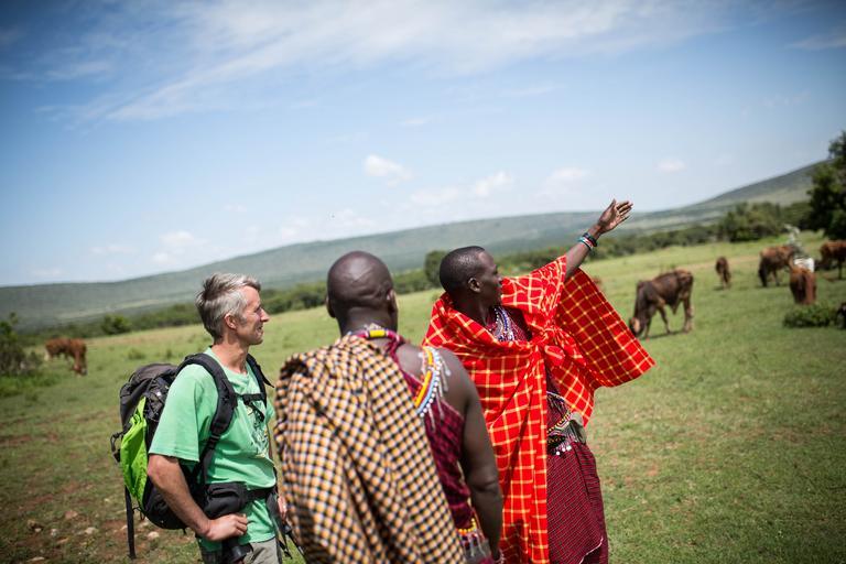 MAKE A MEME View Large Image Maasai Mara: In a photograph taken by Make It Kenya 24 June 2015, author and travel writer Stuart Butler and his Maasai guide and companion Josphat Mako talk with a Maasai known as Lemeria in the Mara North Conservancy adjacent to Kenya's ...