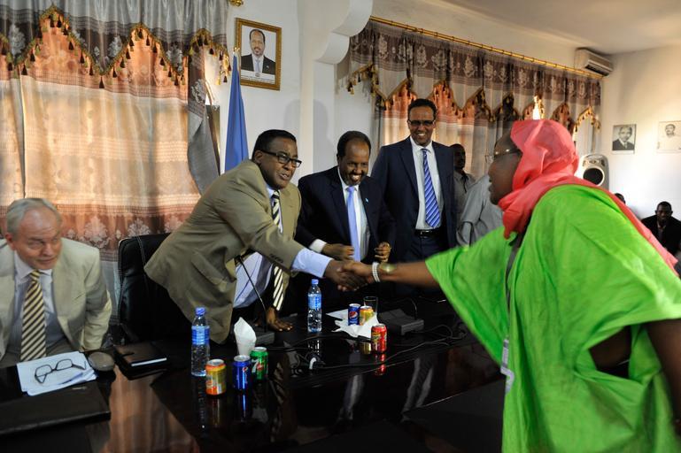 Keywords: The Deputy Special Representative of the Chairperson of the African Union Commission (DSRCC) for Somalia, Lydia Wanyoto, shakes hands with the President of Somalia, Hassan Sheikh Mohamoud, and The Prime Minister of Somalia, Omar Abdirashid Ali Sharmarke, during the Signing Ceremony for the Formation of Somalia's Federal State of Hiran and Middle Shabelle in Mogadishu, Somalia, on August 8, 2015. AMISOM Photo/Omar Abdisalan The Deputy Special Representative of the Chairperson of the African Union Commission (DSRCC) for Somalia, Lydia Wanyoto, shakes hands with the President of Somalia, Hassan Sheikh Mohamoud, and The Prime Minister of Somalia, Omar Abdirashid Ali Sharmarke, during the Signing Ceremony for the Formation of Somalia's Federal State of Hiran and Middle Shabelle in Mogadishu, Somalia, on August 8, 2015. AMISOM Photo/Omar Abdisalan |
