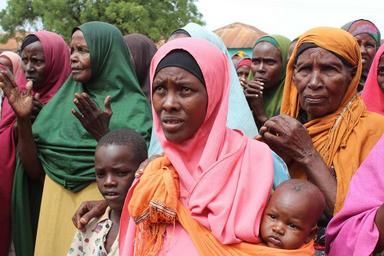 | Keywords: groupshot people outdoor costume Residents of Diinsoor town, Somalia attend a public rally addressed by officials from the African Union Mission in Somalia (AMISOM) and the Somali National Army (SNA) on August 13, 2015 after the town was captured from the extremist group Al Shabaab. AMISOM Photo /Abdi Dakane Residents of Diinsoor town, Somalia attend a public rally addressed by officials from the African Union Mission in Somalia (AMISOM) and the Somali National Army (SNA) on August 13, 2015 after the town was captured from the extremist group Al Shabaab. AMISOM Photo /Abdi Dakane |