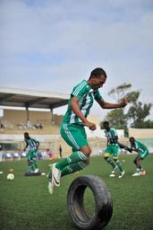 Keywords: outdoor The Somalia national soccer team seen doing drills during a training session at Banadir stadium in Mogadishu on August 29 2015, in preparation for the upcoming World Cup Qualifiers. Sports in Somalia is recovering as a result of the relative peace and progress witnessed in the country. AMISOM Photo / Ilyas Ahmed The Somalia national soccer team seen doing drills during a training session at Banadir stadium in Mogadishu on August 29 2015, in preparation for the upcoming World Cup Qualifiers. Sports in Somalia is recovering as a result of the relative peace and progress witnessed in the country. AMISOM Photo / Ilyas Ahmed