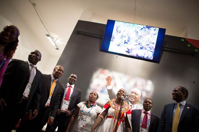 Keywords: make it kenya campaign launch president uhuru kenyatta magicalkenya whyilovekenya tembeakenya kenyaliving proudlykenyan businessafrica businessinafrica investmentkenya kenyameansbusiness investinkenya brandkenya africarising business commerce trade investment indoor ITALY, Milan: In a photograph taken by Make It Kenya, 8 September 2015, Kenyan singer Emmy Kosgei performs at the official launch of the Make It Kenya international brand campaign in the Italian city of Milan. Introduced by MEAACT to promote and enhance Kenya’s position as a global leader in tourism, commerce and investment, the VIP event at Kenya House, an extension of Kenya’s Expo pavilion that is located in the centre of Milan and being used to further showcase Kenya’s cultural and economic assets, saw President Kenyatta officially activate the new digital portal MakeItKenya.com and supporting social media platforms. The digital elements have been specifically designed as a source of rich sharable content that will connect the world to Kenya, through people’s computers, smart phones and digital devices. MANDATORY CREDIT: MAKE IT KENYA PHOTO / STUART PRICE. ITALY, Milan: In a photograph taken by Make It Kenya, 8 September 2015, Kenyan singer Emmy Kosgei performs at the official launch of the Make It Kenya international brand campaign in the Italian city of Milan. Introduced by MEAACT to promote and enhance Kenya’s position as a global leader in tourism, commerce and investment, the VIP event at Kenya House, an extension of Kenya’s Expo pavilion that is located in the centre of Milan and being used to further showcase Kenya’s cultural and economic assets, saw President Kenyatta officially activate the new digital portal MakeItKenya.com and supporting social media platforms. The digital elements have been specifically designed as a source of rich sharable content that will connect the world to Kenya, through people’s computers, smart phones and digital devices. MANDATORY CREDIT: MAKE IT KENYA PHOTO / STUART PRICE.