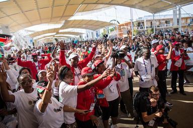 | Keywords: kenya italy milan expo 2015 traditional singing dancing song dance race marathon athletes runners run 3km 10km music celebration showcase world coffee nation tourism investment crowd people ITALY, Milan: In a photograph taken by Make It Kenya 10 September 2015, Kenyans attending the Milan Expo 2015 cheer and celbrate as runners approach the finish line of a 3km family fun run as part of a number of events held in Milan this week to mark the Kenyan Week celebrations at Expo Milan 2015, a universal exhibition and platform for the exchange of ideas and shared solutions on the theme of food. MANDATORY CREDIT: MAKE IT KENYA PHOTO / STUART PRICE. ITALY, Milan: In a photograph taken by Make It Kenya 10 September 2015, Kenyans attending the Milan Expo 2015 cheer and celbrate as runners approach the finish line of a 3km family fun run as part of a number of events held in Milan this week to mark the Kenyan Week celebrations at Expo Milan 2015, a universal exhibition and platform for the exchange of ideas and shared solutions on the theme of food. MANDATORY CREDIT: MAKE IT KENYA PHOTO / STUART PRICE. |