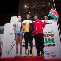 | Keywords: kenya italy milan expo 2015 traditional singing dancing song dance race marathon athletes runners run 3km 10km music celebration showcase world coffee nation tourism investment ITALY, Milan: In a photograph taken by Make It Kenya 10 September 2015, Caroline Cherone (centre), winner of the ladies Kenya Expo 'Run With The Champions' 10km race held at Expo Milan 2015, stands with second place Sara Dossena (left) and third place Kuria Millicent Gathoni (right) on the podium to having received their trophies. Kenyan runner Thomas James Lokomwa won the race with second place Geoffrey Kiprono Ngetich coming in ahead of Silas Muturi Gichovi making a clean Kenyan 1-2-3. The race, along with a family 3km fun-run which took place earlier in the day, was one of a number of events held in Milan this week to mark the Kenyan Week celebrations at Expo Milan 2015, a universal exhibition and platform for the exchange of ideas and shared solutions on the theme of food. MANDATORY CREDIT: MAKE IT KENYA PHOTO / STUART PRICE. ITALY, Milan: In a photograph taken by Make It Kenya 10 September 2015, Caroline Cherone (centre), winner of the ladies Kenya Expo 'Run With The Champions' 10km race held at Expo Milan 2015, stands with second place Sara Dossena (left) and third place Kuria Millicent Gathoni (right) on the podium to having received their trophies. Kenyan runner Thomas James Lokomwa won the race with second place Geoffrey Kiprono Ngetich coming in ahead of Silas Muturi Gichovi making a clean Kenyan 1-2-3. The race, along with a family 3km fun-run which took place earlier in the day, was one of a number of events held in Milan this week to mark the Kenyan Week celebrations at Expo Milan 2015, a universal exhibition and platform for the exchange of ideas and shared solutions on the theme of food. MANDATORY CREDIT: MAKE IT KENYA PHOTO / STUART PRICE. |