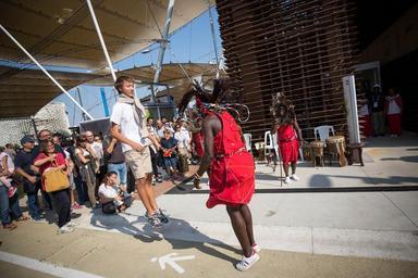 Keywords: kenya italy milan expo 2015 traditional singing dancing song dance race marathon athletes runners run 3km 10km music celebration showcase world coffee nation tourism investment ITALY, Milan: In a photograph taken by Make It Kenya 10 September 2015, a member of the public joins Kenyans as they perform traditional dance for a gathered audience outside the Kenya Pavilion as part of Kenyan Week celebrations at Expo Milan 2015, a universal exhibition and platform for the exchange of ideas and shared solutions on the theme of food. A number of events were held in Milan to mark the occasion, incluing a 3km family fun run completed by Hon. Phyllis Kandie, Minister for East Afrian Affairs, Commerce and Tourism (MEAACT) and the Kenya Expo Run With The Champions 10km race in which some of Kenyans top athletes competed against professional and enthusiast runners alike. MANDATORY CREDIT: MAKE IT KENYA PHOTO / STUART PRICE. ITALY, Milan: In a photograph taken by Make It Kenya 10 September 2015, a member of the public joins Kenyans as they perform traditional dance for a gathered audience outside the Kenya Pavilion as part of Kenyan Week celebrations at Expo Milan 2015, a universal exhibition and platform for the exchange of ideas and shared solutions on the theme of food. A number of events were held in Milan to mark the occasion, incluing a 3km family fun run completed by Hon. Phyllis Kandie, Minister for East Afrian Affairs, Commerce and Tourism (MEAACT) and the Kenya Expo Run With The Champions 10km race in which some of Kenyans top athletes competed against professional and enthusiast runners alike. MANDATORY CREDIT: MAKE IT KENYA PHOTO / STUART PRICE.