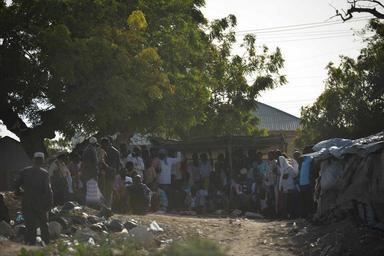 | Keywords: outdoor Spectators stand around the competitors of an archery competition, as they shoot arrows towards a target in order to determine who the better archer is. AMISOM Photo / Tobin Jones Spectators stand around the competitors of an archery competition, as they shoot arrows towards a target in order to determine who the better archer is. AMISOM Photo / Tobin Jones |