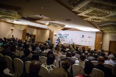 | Keywords: norway kenya business partnership nairobi trade investment relations development public private sector ceos companies hall auditorium room indoor people crowd KENYA, Nairobi: In a photograph taken by Make It Kenya 18 September 2015, Dr. Amina Mohamed, Cabinet Secretary for The Kenyan Ministry of Foreign Affairs and International Trade speaks at the opening of the Kenya-Norway Partnership in Business Seminar at the InterContinental Hotel in the Kenyan capital Nairobi. The seminar saw Norway's Minister of Trade & Industry Ms. Monica Maelend lead a delegation of over 50 Norwegian CEOs and business representatives to Kenya to meet a series of high profile public and private sector companies in a move designed as a major development in Kenya-Norway investment relations. MAKE IT KENYA PHOTO / STUART PRICE. KENYA, Nairobi: In a photograph taken by Make It Kenya 18 September 2015, Dr. Amina Mohamed, Cabinet Secretary for The Kenyan Ministry of Foreign Affairs and International Trade speaks at the opening of the Kenya-Norway Partnership in Business Seminar at the InterContinental Hotel in the Kenyan capital Nairobi. The seminar saw Norway's Minister of Trade & Industry Ms. Monica Maelend lead a delegation of over 50 Norwegian CEOs and business representatives to Kenya to meet a series of high profile public and private sector companies in a move designed as a major development in Kenya-Norway investment relations. MAKE IT KENYA PHOTO / STUART PRICE. |