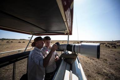 | Keywords: KENYA, Masai Mara: In a photograph taken by Make It Kenya 29 September 2015, Carel Verhoef (left) and Andre Van Kets, Co-founders of HerdTracker, a website that gives live, real-time updates of the great wildebeest migration, photograph and film a large herd of wildebeest during a live streaming feed on HerdTracker.com from in Kenya's world famous Masai Mara National Reserve. Every year, hundreds of thousands of wildebeest, zebra and other ungulate animals migrate between Tanzania's Serengeti and Kenya's Masai Mara in a year-long, continuous cycle, which sees the animals travel thousands of kilometres and is known as one of the seven natural wonders of the world, and is a major draw for wildlife enthusiasts and tourists from around the world. MANDATORY CREDIT: MAKE IT KENYA PHOTO / STUART PRICE. KENYA, Masai Mara: In a photograph taken by Make It Kenya 29 September 2015, Carel Verhoef (left) and Andre Van Kets, Co-founders of HerdTracker, a website that gives live, real-time updates of the great wildebeest migration, photograph and film a large herd of wildebeest during a live streaming feed on HerdTracker.com from in Kenya's world famous Masai Mara National Reserve. Every year, hundreds of thousands of wildebeest, zebra and other ungulate animals migrate between Tanzania's Serengeti and Kenya's Masai Mara in a year-long, continuous cycle, which sees the animals travel thousands of kilometres and is known as one of the seven natural wonders of the world, and is a major draw for wildlife enthusiasts and tourists from around the world. MANDATORY CREDIT: MAKE IT KENYA PHOTO / STUART PRICE. |