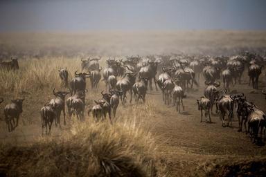 MAKE A MEME View Large Image Masai Mara: In a photograph taken by Make It Kenya 29 September 2015, a large group of wildebeest break into a run as having just crossed the Mara River in Kenya's world famous Masai Mara National Reserve. Every year, hundreds of thousands ...