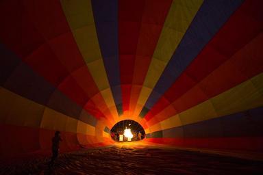 | Keywords: vehicle aircraft bright KENYA, Masai Mara: In a photograph taken by Make It Kenya 30 September 2015, gas is flared during final preparations for a Governor's Balloon Safari hot air balloon flight over the Masai Mara National Reserve. Seeing the Mara from the air requires an early start in order to be airborne for the sunrise, but offers tourists visiting the famous wildlife reserve a unique and panoramic way to view one of Kenya's most famous natural attractions from the basket of a hot air balloon. MANDATORY CREDIT: MAKE IT KENYA PHOTO / STUART PRICE. KENYA, Masai Mara: In a photograph taken by Make It Kenya 30 September 2015, gas is flared during final preparations for a Governor's Balloon Safari hot air balloon flight over the Masai Mara National Reserve. Seeing the Mara from the air requires an early start in order to be airborne for the sunrise, but offers tourists visiting the famous wildlife reserve a unique and panoramic way to view one of Kenya's most famous natural attractions from the basket of a hot air balloon. MANDATORY CREDIT: MAKE IT KENYA PHOTO / STUART PRICE. |