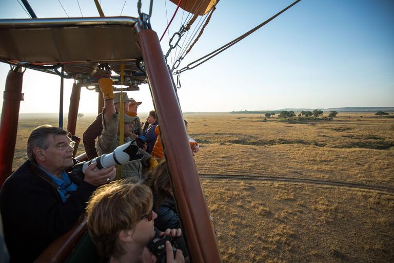 | Keywords: KENYA, Masai Mara: In a photograph taken by Make It Kenya 02 October 2015, tourists take photographs and look out from the basket of a Governor's Balloon Safari hot air balloon as it floats along the course of the Mara River just after sunrise. Seeing the Mara from the air requires an early start in order to be airborne for the sunrise, but offers tourists visiting the famous wildlife reserve a unique and panoramic way to view one of Kenya's most famous natural attractions from the basket of a hot air balloon. MANDATORY CREDIT: MAKE IT KENYA PHOTO / STUART PRICE. KENYA, Masai Mara: In a photograph taken by Make It Kenya 02 October 2015, tourists take photographs and look out from the basket of a Governor's Balloon Safari hot air balloon as it floats along the course of the Mara River just after sunrise. Seeing the Mara from the air requires an early start in order to be airborne for the sunrise, but offers tourists visiting the famous wildlife reserve a unique and panoramic way to view one of Kenya's most famous natural attractions from the basket of a hot air balloon. MANDATORY CREDIT: MAKE IT KENYA PHOTO / STUART PRICE. |