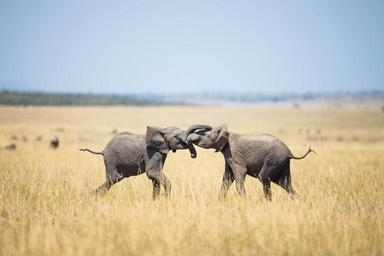| Keywords: outdoor animal KENYA, Masai Mara: In a photograph taken by Make It Kenya 03 October 2015, two young elephants spar with each other on the savannah in the Mara Triangle, part of Kenya's wider Masai Mara ecosystem. During the months of July through to October, one of nature's greatest events takes place in the Mara when hundreds of thousands of wildebeest, zebra and other ungulates migrate northwards from Tanzania's Serengeti in search of fresh pasture and grazing, before turning and heading south again in a journey that covers thousands of kilometres and is known as one of the seven natural wonders of the world, making it a major draw for wildlife enthusiasts and tourists from around the globe. MANDATORY CREDIT: MAKE IT KENYA PHOTO / STUART PRICE. KENYA, Masai Mara: In a photograph taken by Make It Kenya 03 October 2015, two young elephants spar with each other on the savannah in the Mara Triangle, part of Kenya's wider Masai Mara ecosystem. During the months of July through to October, one of nature's greatest events takes place in the Mara when hundreds of thousands of wildebeest, zebra and other ungulates migrate northwards from Tanzania's Serengeti in search of fresh pasture and grazing, before turning and heading south again in a journey that covers thousands of kilometres and is known as one of the seven natural wonders of the world, making it a major draw for wildlife enthusiasts and tourists from around the globe. MANDATORY CREDIT: MAKE IT KENYA PHOTO / STUART PRICE. |