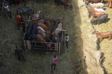 | Keywords: outdoor Cattle are loaded into the hold of a ship at Mogadishu, Seaport, on October 29. The cattle are destined for the port of Muscat in Oman. AMISOM Photo / Tobin Jones Cattle are loaded into the hold of a ship at Mogadishu, Seaport, on October 29. The cattle are destined for the port of Muscat in Oman. AMISOM Photo / Tobin Jones |