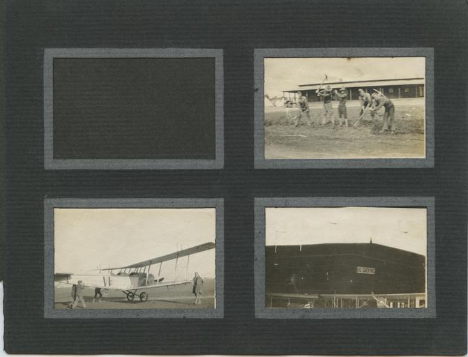 Keywords: 1910s world war i worldwari royal flying corps royalflyingcorps royal air force royalairforce Three photographs: men working the ground with pickaxes; airmen either side of a Curtiss JN-4 aircraft; the roof of a hangar, with the top half of the aircraft below a 'No Smoking' sign. Photographs taken by Harry McBride (1893-1969), who worked as a rigger in the Royal Flying Corps and Royal Air Force during the First World War. He was stationed at Camp Mohawk near Deseronto, Ontario, and also at Camp Taliaferro near Fort Worth,, Texas. Scanned images donated to the Archives by Dan McBride, Harry's grandson. Three photographs: men working the ground with pickaxes; airmen either side of a Curtiss JN-4 aircraft; the roof of a hangar, with the top half of the aircraft below a 'No Smoking' sign. Photographs taken by Harry McBride (1893-1969), who worked as a rigger in the Royal Flying Corps and Royal Air Force during the First World War. He was stationed at Camp Mohawk near Deseronto, Ontario, and also at Camp Taliaferro near Fort Worth,, Texas. Scanned images donated to the Archives by Dan McBride, Harry's grandson. |