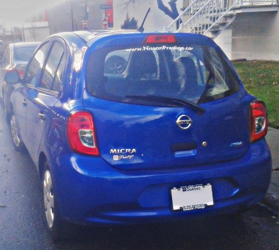 | Keywords: 2015 Nissan Micra -- Rear.jpg English 2015 Nissan Micra photographed in Montreal Quebec Canada <br> Français Ma photo d'un Nissan Micra de 2015 à Montréal Québec Canada Own 2015-11-01 Bull-Doser English All Rights Released <br>Français Tous droits libérées Nissan Micra K13 |