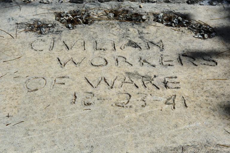 Keywords: usaf u.s. air force usairforce pacaf pacom wake island wakeisland jber joint base elmendorf-richardson jointbaseelmendorfrichardson prsc 611th asus 611thasus world war ii worldwarii wwii 75th anniversary 75thanniversary battle of wake island battleofwakeisland text texture outdoor Hand-drawn lettering reading “Civilian Workers of Wake: 12-23-41” marks a concrete slab near the shoreline of the Wake Island lagoon in the mid-Pacific. American forces on the island, led by the U.S. Marine Corps 1st Marine Defense Battalion and aircraft from Marine Attack Squadron 211, held out against Japanese assaults for 15 days. Nearly 1200 civilian workers, racing to develop the island’s airfield in the closing months of 1941, were on the island and participated in the battle. The Americans surrendered on December 23, 1941 and 98 of the civilian workers of Wake were kept on the island to aid the Japanese with heavy equipment operation. The “98” were executed by the Japanese on October 5, 1943. Wake Island, "Where America's Day Really Begins," is an American possession in the middle Pacific within the Micronesia subregion, 2300 miles west of Hawaii and 2000 miles southeast of Tokyo. The coral atoll comprises three islands and roughly 2.8 square miles of dry land. In recognition of its importance during WWII in the Pacific and to thousands of species of sea birds, fish, and other oceanic flaura and fauna today, Wake Island is designated as both a National Historic Landmark and part of the Pacific Remote Islands Marine National Monument. Hand-drawn lettering reading “Civilian Workers of Wake: 12-23-41” marks a concrete slab near the shoreline of the Wake Island lagoon in the mid-Pacific. American forces on the island, led by the U.S. Marine Corps 1st Marine Defense Battalion and aircraft from Marine Attack Squadron 211, held out against Japanese assaults for 15 days. Nearly 1200 civilian workers, racing to develop the island’s airfield in the closing months of 1941, were on the island and participated in the battle. The Americans surrendered on December 23, 1941 and 98 of the civilian workers of Wake were kept on the island to aid the Japanese with heavy equipment operation. The “98” were executed by the Japanese on October 5, 1943. Wake Island, "Where America's Day Really Begins," is an American possession in the middle Pacific within the Micronesia subregion, 2300 miles west of Hawaii and 2000 miles southeast of Tokyo. The coral atoll comprises three islands and roughly 2.8 square miles of dry land. In recognition of its importance during WWII in the Pacific and to thousands of species of sea birds, fish, and other oceanic flaura and fauna today, Wake Island is designated as both a National Historic Landmark and part of the Pacific Remote Islands Marine National Monument. |