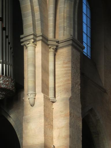 | Keywords: 20161203Trier Dom11.jpg Location 49 75624865 6 64360106 Pfeiler im Trierer Dom - die Pfeiler wurden im Zuge der spätromanischen Einwölbung im 13 Jh erneuert im Kern steckt aber oft noch römisches Backstein-Mauerwerk own AnRo0002 2016-12-03 Cc-zero Interior of the Cathedral of St Peter Trier |