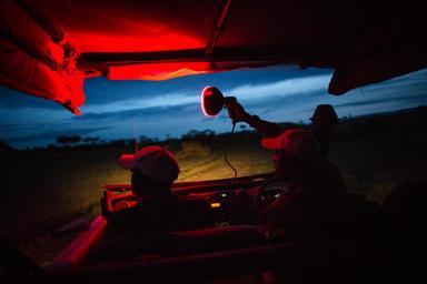 | Keywords: KENYA, Masai Mara: In a photograph taken by Make It Kenya 09 January 2016, Tim Leperes (right), a guide with Asilia Africa Camp, holds a red-spotting lamp after dusk on a night-time game drive in Naboisho Conservancy bordering the Masai Mara National Reserve in Kenya. The country’s famous wildlife is being showcased with two world firsts in a series of live web broadcasts using new state-of–the-art technology. #KenyaLive enables people to witness the excitement of a night safari in the Mara – as well as Kenya’s coastal underwater treasures - as the action happens in real time. Building on the success of #MaraLive - the world’s first live web broadcast of the great wildebeest migration - Make It Kenya has again partnered with HerdTracker to use a combination of the most innovative filming technology, and Twitter’s Periscope app, to give people around the world unprecedented access to some of the most exciting and rare animal behaviours, with 50 live broadcasts over 11 days. MANDATORY CREDIT: MAKE IT KENYA PHOTO / STUART PRICE. KENYA, Masai Mara: In a photograph taken by Make It Kenya 09 January 2016, Tim Leperes (right), a guide with Asilia Africa Camp, holds a red-spotting lamp after dusk on a night-time game drive in Naboisho Conservancy bordering the Masai Mara National Reserve in Kenya. The country’s famous wildlife is being showcased with two world firsts in a series of live web broadcasts using new state-of–the-art technology. #KenyaLive enables people to witness the excitement of a night safari in the Mara – as well as Kenya’s coastal underwater treasures - as the action happens in real time. Building on the success of #MaraLive - the world’s first live web broadcast of the great wildebeest migration - Make It Kenya has again partnered with HerdTracker to use a combination of the most innovative filming technology, and Twitter’s Periscope app, to give people around the world unprecedented access to some of the most exciting and rare animal behaviours, with 50 live broadcasts over 11 days. MANDATORY CREDIT: MAKE IT KENYA PHOTO / STUART PRICE. |