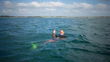Keywords: water swim sport outdoor KENYA, Watamu: In a photograph taken by Make It Kenya 16 January 2016, Steve Curtis of Aqua Ventures based in Watamu gives the 'Ok' signal as he prepares to partake in a live underwater broadcast with HerdTracker on a reef under the ocean off the coast of Watamu. Kenya's famous wildlife and beautiful tropical coastline is being showcased in a series of live web broadcasts using state-of–the-art technology. #KenyaLive has enabled people to witness the excitement of a night safari in the Mara in real time using specialist night-vision equipment and is now in Watamu highlighting the work of the turtle conservation organisation Local Ocean Trust, and other activities including stand-up paddle boarding with dolphins, snorkelling and scuba diving by using the scial media application Periscope. MAKE IT KENYA PHOTO / STUART PRICE. KENYA, Watamu: In a photograph taken by Make It Kenya 16 January 2016, Steve Curtis of Aqua Ventures based in Watamu gives the 'Ok' signal as he prepares to partake in a live underwater broadcast with HerdTracker on a reef under the ocean off the coast of Watamu. Kenya's famous wildlife and beautiful tropical coastline is being showcased in a series of live web broadcasts using state-of–the-art technology. #KenyaLive has enabled people to witness the excitement of a night safari in the Mara in real time using specialist night-vision equipment and is now in Watamu highlighting the work of the turtle conservation organisation Local Ocean Trust, and other activities including stand-up paddle boarding with dolphins, snorkelling and scuba diving by using the scial media application Periscope. MAKE IT KENYA PHOTO / STUART PRICE.