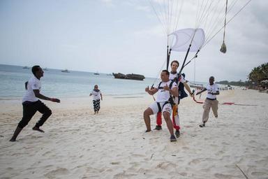 Keywords: outdoor KENYA, Watamu: In a photograph taken by Make It Kenya 17 January 2016, Kenya's Cabinet Secretary for Tourism Hon. Najib Balala arrives in the coastal town of Watamu by parachute after skydiving out of a plane from approx. 11,000ft. Kenya's famous wildlife and beautiful tropical coastline is being showcased in a series of live web broadcasts using state-of–the-art technology. #KenyaLive has enabled people to witness the excitement of a night safari in the Mara in real time using specialist night-vision equipment and is now in Watamu highlighting the work of the turtle conservation organisation Local Ocean Trust, and other activities including stand-up paddle boarding with dolphins, snorkelling and scuba diving by using the scial media application Periscope. MAKE IT KENYA PHOTO / STUART PRICE. KENYA, Watamu: In a photograph taken by Make It Kenya 17 January 2016, Kenya's Cabinet Secretary for Tourism Hon. Najib Balala arrives in the coastal town of Watamu by parachute after skydiving out of a plane from approx. 11,000ft. Kenya's famous wildlife and beautiful tropical coastline is being showcased in a series of live web broadcasts using state-of–the-art technology. #KenyaLive has enabled people to witness the excitement of a night safari in the Mara in real time using specialist night-vision equipment and is now in Watamu highlighting the work of the turtle conservation organisation Local Ocean Trust, and other activities including stand-up paddle boarding with dolphins, snorkelling and scuba diving by using the scial media application Periscope. MAKE IT KENYA PHOTO / STUART PRICE.