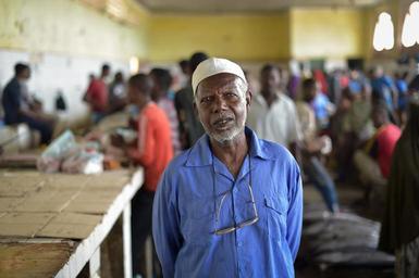 | Keywords: people A Somali man stands in the center of Mogadishu's fish market in the build up to Eid el-Fitr on July 4, 2016. AMISOM Photo / Tobin Jones A Somali man stands in the center of Mogadishu's fish market in the build up to Eid el-Fitr on July 4, 2016. AMISOM Photo / Tobin Jones |