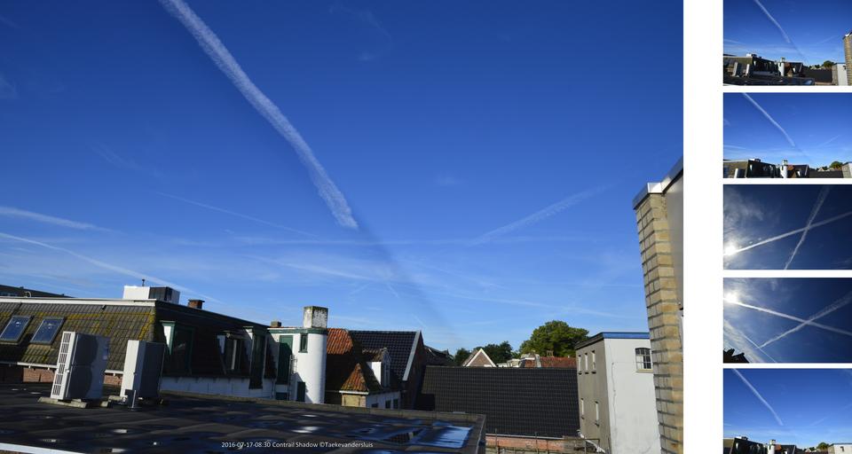 Keywords: weather optics optic contrail shadow black beam dark line lines volumetric vliegtuigstreep vliegtuig streep schaduw sky lucht optisch vapor trail climate model mechanism klimaat klimaatmodel mechanisme edge chemtrail debunking debunk outdoor This morning I saw this strange looking shadow underneath a contrail, it disappered within seconds. Apparently this optical phenomena appears when a contrail casts a shadow on a lower lying thin layer of cloud [almost invisible]. But myself I'm not quite sure about this explanation, I have to think a bit more. Couldn't it instead have an ything to do with polarisation maybe? I don't know. The thing about shadows being that they are not really visible. They are the absence of light rather than a shadow being projected, if you look through them you will not see them the photos themselves are non-processed, I only added the title and copypasted the 5 small versions to the right (they are only resized, and not otherwise processed. The top one is the oldest shot, the lowest one is the last shot just a few seconds later) This morning I saw this strange looking shadow underneath a contrail, it disappered within seconds. Apparently this optical phenomena appears when a contrail casts a shadow on a lower lying thin layer of cloud [almost invisible]. But myself I'm not quite sure about this explanation, I have to think a bit more. Couldn't it instead have an ything to do with polarisation maybe? I don't know. The thing about shadows being that they are not really visible. They are the absence of light rather than a shadow being projected, if you look through them you will not see them the photos themselves are non-processed, I only added the title and copypasted the 5 small versions to the right (they are only resized, and not otherwise processed. The top one is the oldest shot, the lowest one is the last shot just a few seconds later) |