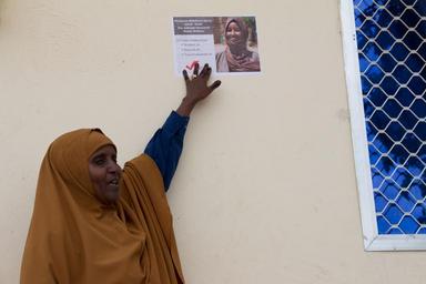 | Keywords: indoor A supporter holds a campaign poster for Subeyda Maxamed Malak Mukhtar, an aspirant for the Federal Lower House of Parliament, in Baidoa, Somalia on September 21, 2016. AMISOM Photo/ Sabir Olad A supporter holds a campaign poster for Subeyda Maxamed Malak Mukhtar, an aspirant for the Federal Lower House of Parliament, in Baidoa, Somalia on September 21, 2016. AMISOM Photo/ Sabir Olad | ||||