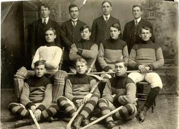 Keywords: sports hockey people monochrome sport team sport A hockey team from Madoc, Ontario, c.1910. A hockey team from Madoc, Ontario, c.1910.