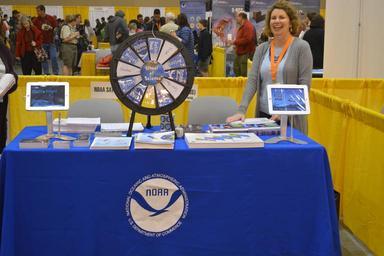 | Keywords: ams2016 ncei goes-r goesr jpss education events outreach education and outreach educationandoutreach nesdis noaa noaa satellites noaasatellites noaa satellite and information service noaasatelliteandinformationservice The NOAA Satellite and Information Service booth is ready for WeatherFest! On January 11, the annual AMS WeatherFest was held prior to the start of the 96th Annual Meeting. Open to weather enthusiasts of all ages, this annual weather fair is one of the most popular events at the AMS Annual Meeting. Parents, teachers, kids, youth groups, and others spent the afternoon learning about the weather and participating in fun activities. The NOAA Satellite and Information Service had a booth at the event, staffed by GOES-R, JPSS and NCEI personnel. At the booth, participants could spin the “Wheel of Science” for a chance to answer questions about weather and win prizes. Also available were iPads allowing attendees to experience the GOES-R mobile game “Satellite Insight” and the SARSAT Program’s “Rescue 406.” Original photo source: www.goes-r.gov/multimedia/events.html The NOAA Satellite and Information Service booth is ready for WeatherFest! On January 11, the annual AMS WeatherFest was held prior to the start of the 96th Annual Meeting. Open to weather enthusiasts of all ages, this annual weather fair is one of the most popular events at the AMS Annual Meeting. Parents, teachers, kids, youth groups, and others spent the afternoon learning about the weather and participating in fun activities. The NOAA Satellite and Information Service had a booth at the event, staffed by GOES-R, JPSS and NCEI personnel. At the booth, participants could spin the “Wheel of Science” for a chance to answer questions about weather and win prizes. Also available were iPads allowing attendees to experience the GOES-R mobile game “Satellite Insight” and the SARSAT Program’s “Rescue 406.” Original photo source: www.goes-r.gov/multimedia/events.html |