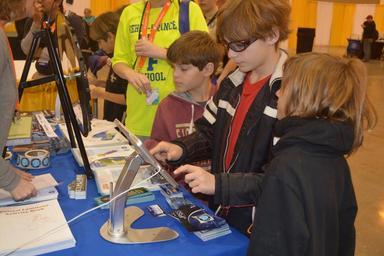 | Keywords: ams2016 goes-r goesr jpss ncei noaa nesdis noaa satellites noaasatellites noaa satellite and information service noaasatelliteandinformationservice education outreach events education and outreach educationandoutreach indoor Kids try out the mobile games available at the NOAA Satellite and Information Service booth at 2016 AMS WeatherFest. On January 11, the annual AMS WeatherFest was held prior to the start of the 96th Annual Meeting. Open to weather enthusiasts of all ages, this annual weather fair is one of the most popular events at the AMS Annual Meeting. Parents, teachers, kids, youth groups, and others spent the afternoon learning about the weather and participating in fun activities. The NOAA Satellite and Information Service had a booth at the event, staffed by GOES-R, JPSS and NCEI personnel. At the booth, participants could spin the “Wheel of Science” for a chance to answer questions about weather and win prizes. Also available were iPads allowing attendees to experience the GOES-R mobile game “Satellite Insight” and the SARSAT Program’s “Rescue 406.” Original photo source: www.goes-r.gov/multimedia/events.html Kids try out the mobile games available at the NOAA Satellite and Information Service booth at 2016 AMS WeatherFest. On January 11, the annual AMS WeatherFest was held prior to the start of the 96th Annual Meeting. Open to weather enthusiasts of all ages, this annual weather fair is one of the most popular events at the AMS Annual Meeting. Parents, teachers, kids, youth groups, and others spent the afternoon learning about the weather and participating in fun activities. The NOAA Satellite and Information Service had a booth at the event, staffed by GOES-R, JPSS and NCEI personnel. At the booth, participants could spin the “Wheel of Science” for a chance to answer questions about weather and win prizes. Also available were iPads allowing attendees to experience the GOES-R mobile game “Satellite Insight” and the SARSAT Program’s “Rescue 406.” Original photo source: www.goes-r.gov/multimedia/events.html |