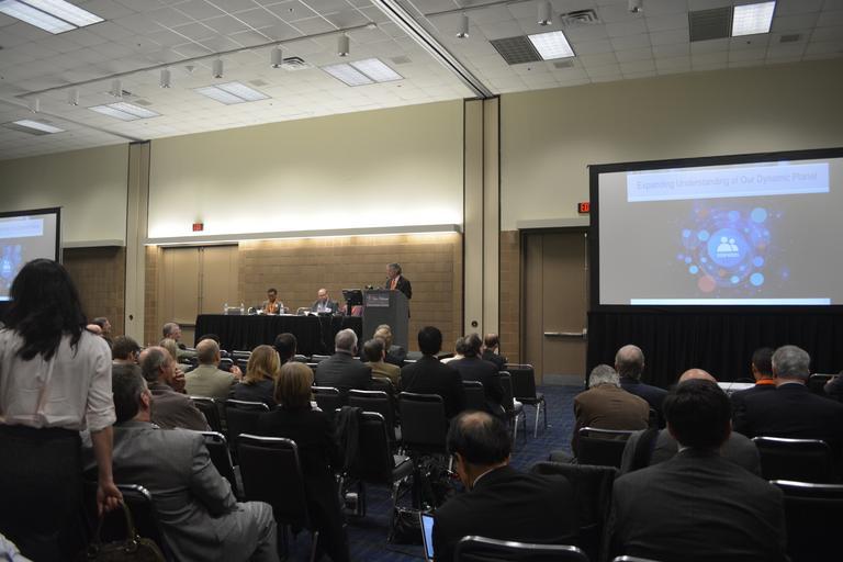 | Keywords: ams2016 room indoor auditorium hall Dr. Stephen Volz provides a perspective of his first year as NOAA Assistant Administrator for Satellite and Information Services during the "Program Overviews and Status for New Operational Environmental Systems" session of the 12th Annual Symposium on New Generation Operational Environmental Satellite Systems at #AMS2016. The AMS Annual Meeting is the world’s largest yearly gathering for the weather, water, and climate community. It brings together great minds from a diverse set of scientific disciplines – helping attendees make career-long professional contact and life-long friends while learning from the very top people in the atmospheric sciences. Original photo source: www.goes-r.gov/multimedia/events.html Dr. Stephen Volz provides a perspective of his first year as NOAA Assistant Administrator for Satellite and Information Services during the "Program Overviews and Status for New Operational Environmental Systems" session of the 12th Annual Symposium on New Generation Operational Environmental Satellite Systems at #AMS2016. The AMS Annual Meeting is the world’s largest yearly gathering for the weather, water, and climate community. It brings together great minds from a diverse set of scientific disciplines – helping attendees make career-long professional contact and life-long friends while learning from the very top people in the atmospheric sciences. Original photo source: www.goes-r.gov/multimedia/events.html |