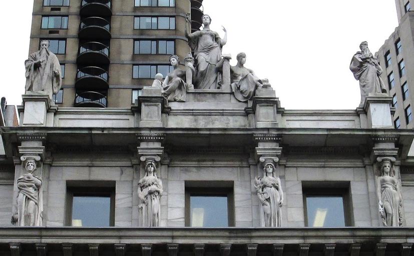 | Keywords: 2016 Appellate courthouse west facade statuary and caryatids.jpg Architectural sculptures and caryatids on the west facade of the Appellate Division Courthouse of the New York State Supreme Court at 27 Madison Avenue at East 25th Street across from Madison Square Park in Manhattan New York City The crowning sculpture group is Peace by Karl Bitter own 2016-03-03 Sculptor Creator Thomas Shields Clarke <br>Architect James Lord Brown 1859 - 1902 <br>Photographer Beyond My Ken 40 74243 -73 987127 heading ESE PD-old-70 self GFDL cc-by-sa-all redundant Images by Beyond My Ken Appellate Division Courthouse of New York State Architectural sculptures in the United States Caryatids in the United States Statues in New York City Karl Bitter Thomas Shields Clarke Allegories of the seasons |