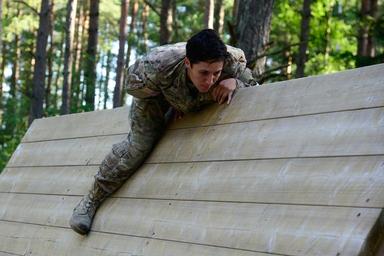 | Keywords: u.s. army usarmy eucom u.s. army europe usarmyeurope usareur nato allies partnership grafenwoehr germany strong europe strongeurope europe best warrior european 21st tsc 21sttsc cbrn 2cr 2nd cavalry regiment 173rd 173 airborne mi 650 650th military intelligence group 7th army training command armytrainingcommand atc 12th 12 cab combat avaiation brigade obstacle course obstaclecourse apft physical fitness test sit ups up push run soldiers chemical biological radioactive nuclear simulation obstacle outdoor U.S. Army Staff Sgt. Vanessa Carrillo, assigned to the 21st Theater Sustainment Command, climbs over a wall as part of an obstacle course during the 2016 European Best Warrior Competition held at the 7th Army Training Command's Grafenwoehr Training Area, Germany, Aug. 8, 2016. The intense, grueling annual week-long competition is the most prestigious competitive event of the region. Event organizers will announce the year's top junior officer, noncommissioned officer and Soldier during a concluding ceremony scheduled for Aug. 11 at the Grafenwoehr Physical Fitness Center. (U.S. Army photo by Pfc. Emily Houdershieldt) U.S. Army Staff Sgt. Vanessa Carrillo, assigned to the 21st Theater Sustainment Command, climbs over a wall as part of an obstacle course during the 2016 European Best Warrior Competition held at the 7th Army Training Command's Grafenwoehr Training Area, Germany, Aug. 8, 2016. The intense, grueling annual week-long competition is the most prestigious competitive event of the region. Event organizers will announce the year's top junior officer, noncommissioned officer and Soldier during a concluding ceremony scheduled for Aug. 11 at the Grafenwoehr Physical Fitness Center. (U.S. Army photo by Pfc. Emily Houdershieldt) |