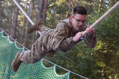 | Keywords: u.s. army usarmy eucom u.s. army europe usarmyeurope usareur nato allies partnership grafenwoehr germany strong europe strongeurope europe best warrior european 21st tsc 21sttsc cbrn 2cr 2nd cavalry regiment 173rd 173 airborne mi 650 650th military intelligence group 7th army training command armytrainingcommand atc 12th 12 cab combat avaiation brigade obstacle course obstaclecourse apft physical fitness test sit ups up push run soldiers chemical biological radioactive nuclear simulation obstacle outdoor U.S. Army 2nd Lt. Justin Ganzer, assigned to the 21st Theater Sustainment Command, climbs on a rope as part of an obstacle course during the 2016 European Best Warrior Competition held at the 7th Army Training Command's Grafenwoehr Training Area, Germany, Aug. 8, 2016. The intense, grueling annual week-long competition is the most prestigious competitive event of the region. Event organizers will announce the year's top junior officer, noncommissioned officer and Soldier during a concluding ceremony scheduled for Aug. 11 at the Grafenwoehr Physical Fitness Center. (U.S. Army photo by Pfc. Emily Houdershieldt) U.S. Army 2nd Lt. Justin Ganzer, assigned to the 21st Theater Sustainment Command, climbs on a rope as part of an obstacle course during the 2016 European Best Warrior Competition held at the 7th Army Training Command's Grafenwoehr Training Area, Germany, Aug. 8, 2016. The intense, grueling annual week-long competition is the most prestigious competitive event of the region. Event organizers will announce the year's top junior officer, noncommissioned officer and Soldier during a concluding ceremony scheduled for Aug. 11 at the Grafenwoehr Physical Fitness Center. (U.S. Army photo by Pfc. Emily Houdershieldt) |
