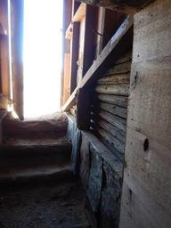 | Keywords: history historic blmcalifornia california blmnevada nevada outdoors archaeology wildlife desert ranch preservation bureau of land management bureauoflandmanagement blmcareers outdoor careers outdoorcareers conservation past public lands publiclands heritage -Story and photo by Jen Rovanpera, Archaeologist for the BLM Applegate Field Office The BLM Applegate Field Office just completed stabilizing and preserving a 1930s root cellar on the historic Bitner Ranch located in Washoe County, Nevada. The root cellar was built in the 1930s to store food and other perishables. It consists of a large cavity (cellar) built into the side of a hill just east of the ranch house. Juniper poles were laid across the top of the cavity, the covered with hay from the nearby meadow. Dirt was then piled onto the roof into order to insulate it further. A small wooden structure with steps leads down into the cellar. Once inside, the maximum height of the cellar is about 6 feet. Shelving units were built along three of the walls. Little is known about the beginnings of Bitner Ranch. A structure in Badger Meadows appears on a survey map as early as 1873/1874; however the land was not patented from the state of Nevada until 1900. Based on the style of barbed wire, some of the older corrals and fences were probably built sometime between 1874 and 1892. The ranch hosts a ranch house, a black smith shop with a bunk house for workers, a milk barn, a root cellar, an outhouse, corrals, and a small animal pen. Most of the remaining structures on the property were built in the 1920s, except for the root cellar which was built in the 1930s and the milk barn which might be one of the oldest standing structures on the ranch. The Bureau of Land Management acquired the Bitner Ranch in 1995. Bitner Ranch is an excellent example of a high desert, homestead era ranch and one of the few remaining ranches to be managed by the Bureau of Land Management in northwestern Nevada. The goal is to preserve the historic ranch, continue research, and establish an interpretive center about the history and wildlife of the meadow. The preservation project included removing the dirt that had caved into the cellar through the collapsed roof, stabilizing the wooden structure, and rebuilding the steps into the cellar. The project was completed in two weeks by Jed Mauldin, Dane Mauldin, and Kody Smith of S.T. Rhoades Construction, Inc. After photo: Interior -Story and photo by Jen Rovanpera, Archaeologist for the BLM Applegate Field Office The BLM Applegate Field Office just completed stabilizing and preserving a 1930s root cellar on the historic Bitner Ranch located in Washoe County, Nevada. The root cellar was built in the 1930s to store food and other perishables. It consists of a large cavity (cellar) built into the side of a hill just east of the ranch house. Juniper poles were laid across the top of the cavity, the covered with hay from the nearby meadow. Dirt was then piled onto the roof into order to insulate it further. A small wooden structure with steps leads down into the cellar. Once inside, the maximum height of the cellar is about 6 feet. Shelving units were built along three of the walls. Little is known about the beginnings of Bitner Ranch. A structure in Badger Meadows appears on a survey map as early as 1873/1874; however the land was not patented from the state of Nevada until 1900. Based on the style of barbed wire, some of the older corrals and fences were probably built sometime between 1874 and 1892. The ranch hosts a ranch house, a black smith shop with a bunk house for workers, a milk barn, a root cellar, an outhouse, corrals, and a small animal pen. Most of the remaining structures on the property were built in the 1920s, except for the root cellar which was built in the 1930s and the milk barn which might be one of the oldest standing structures on the ranch. The Bureau of Land Management acquired the Bitner Ranch in 1995. Bitner Ranch is an excellent example of a high desert, homestead era ranch and one of the few remaining ranches to be managed by the Bureau of Land Management in northwestern Nevada. The goal is to preserve the historic ranch, continue research, and establish an interpretive center about the history and wildlife of the meadow. The preservation project included removing the dirt that had caved into the cellar through the collapsed roof, stabilizing the wooden structure, and rebuilding the steps into the cellar. The project was completed in two weeks by Jed Mauldin, Dane Mauldin, and Kody Smith of S.T. Rhoades Construction, Inc. After photo: Interior |
